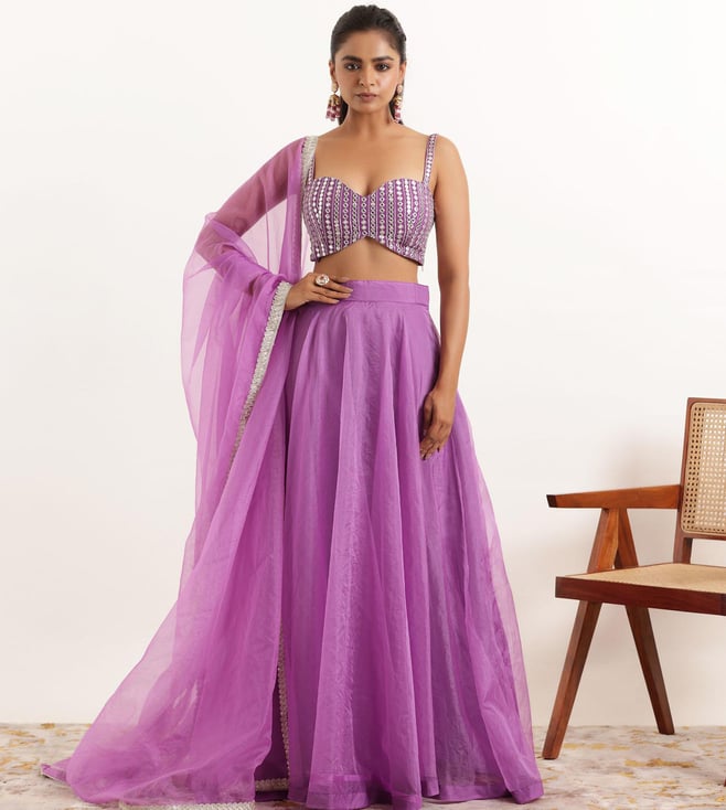 Lavender Poly Georgette Regular Fit Lehenga Set