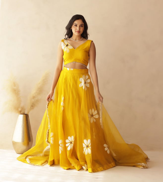 Yellow Poly Georgette Regular Fit Lehenga Set