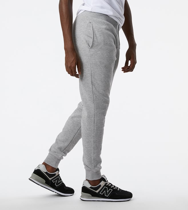 New Balance Grey Cotton Solid Regular Fit Trackpants