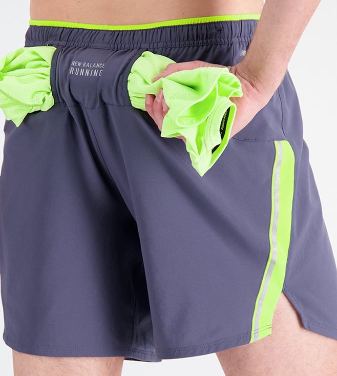 New Balance Grey Polyester Solid Regular Fit Shorts