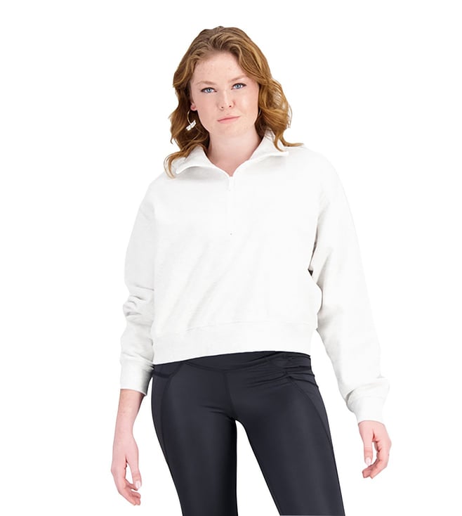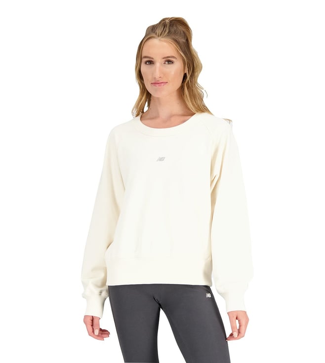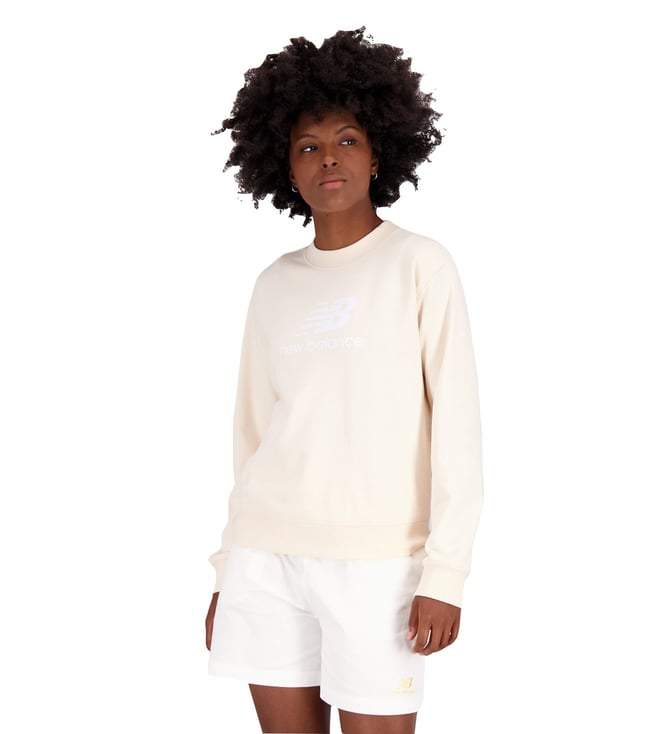 Cream Cotton Solid Relaxed Fit Sweatshirt