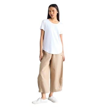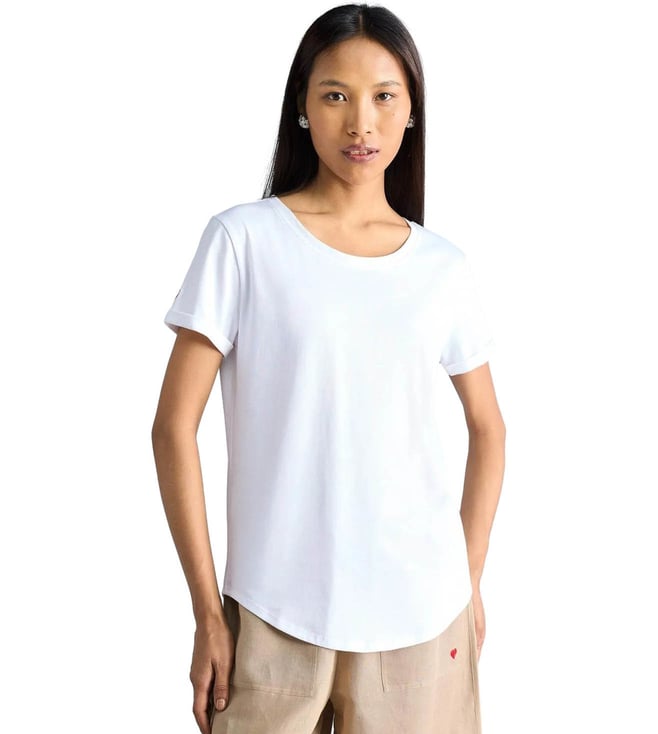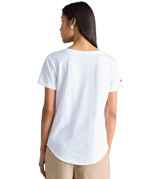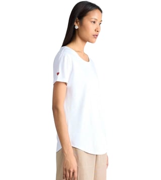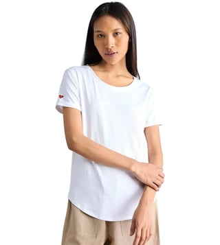 Basics that are anything but basic. A comfy white cotton tee that promises to be the hardest working piece in your closet. Pair with just about everything from jeans and shorts to trousers and skirts.