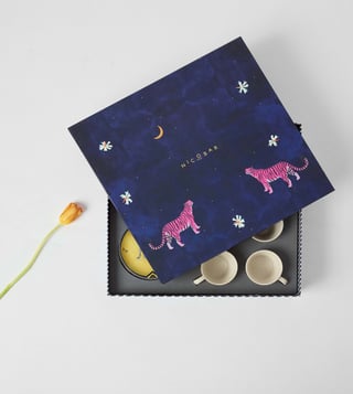 The ideal accompaniment for tea time,the chand trail gift set is perfect to elevate your everyday rituals. Made with smooth and sturdy stoneware the set features delightful espresso mugs, tea plates and a cookie tray. Great to give and even better to keep