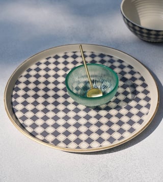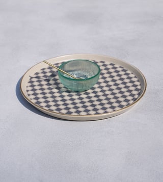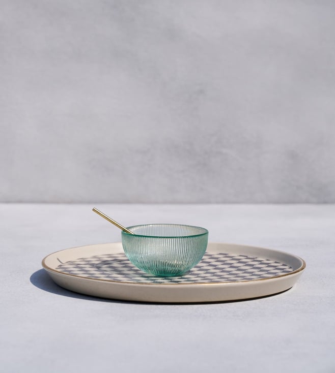 A classic chip and dip stone platter that's perfect to trot out when you're expecting guests at home. Features gold rim that elevates, accompanied by a recycled glass bowl and a spoon. Excellent to gift or keep. Comes in a Gift Box.