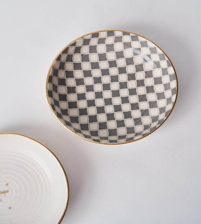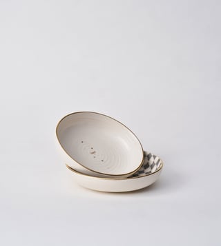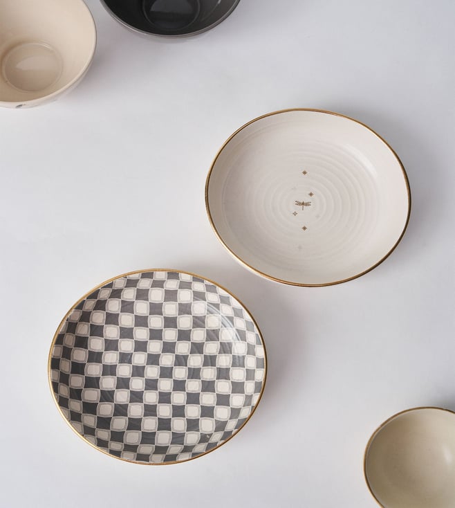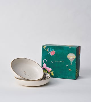 Crafted in smooth stoneware with a graphic charcoal and gold design. Just right to hold servings of rice, noodles, or hearty one-pot meals. Neatly packaged in little boxes, they are great for gifting even if only to yourself.