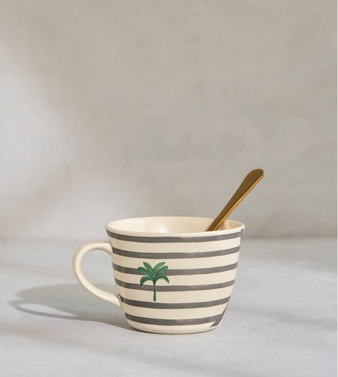 Chilly nights call for a steamy mug of soup. Crafted in soft stoneware, this soup mug is generously proportioned, handy and comes with a little spoon of its own. Cosy up with some nice soup and a lovely leafy motif for an eye candy