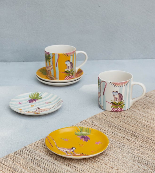 The mahi gift set comes with 4 straight mugs and 4 tea plates with brilliant and bright motifs inspired by our travels. The lightweight set makes for a thoughtful gift for tea lovers, great to give, great to keep. Pair these with other teaware from our collection for a complete setting.