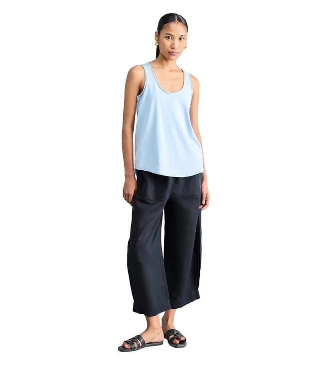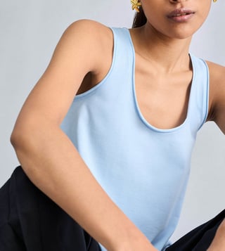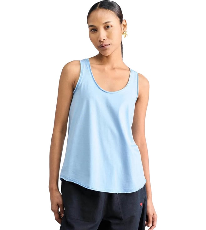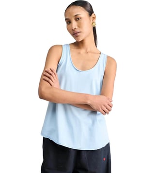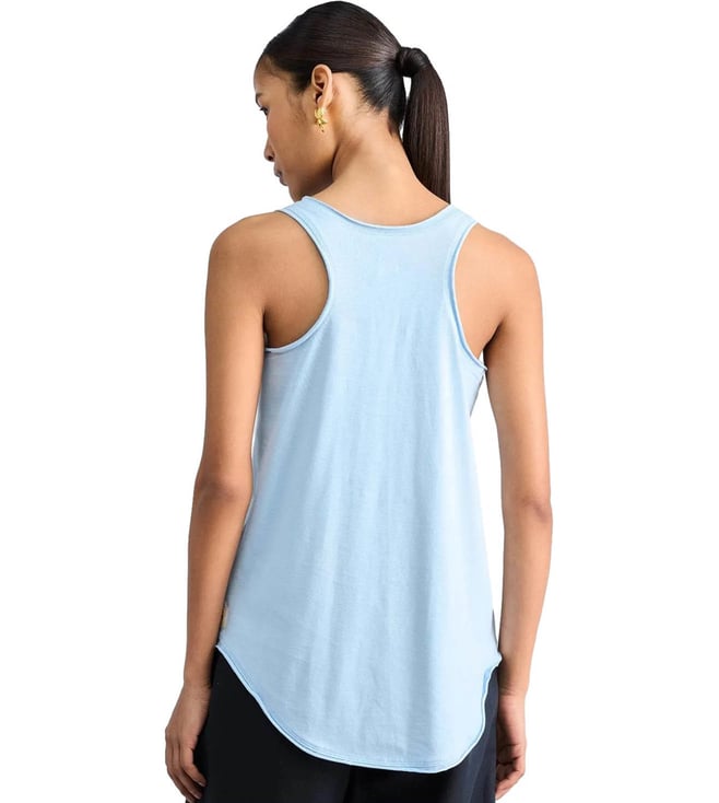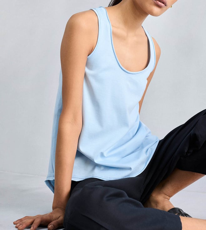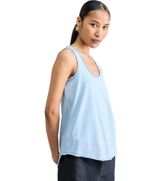 A light blue relaxed fitting racerback tank crafted in lightweight cotton. A layering essential that is equally good for Pilates or pre dinner drinks. Pair with just about everything from jeans and shorts to trousers and skirts.