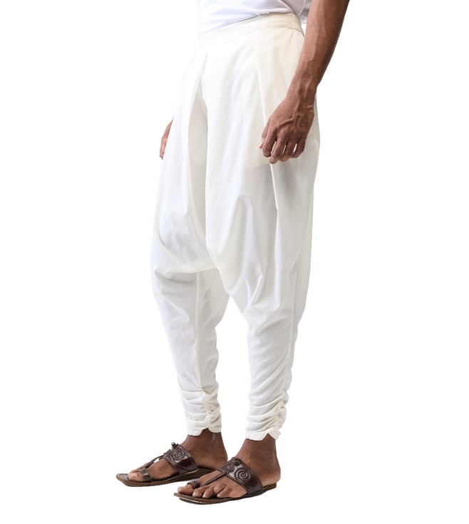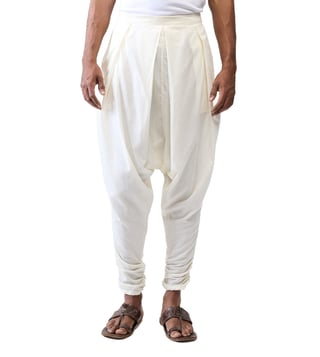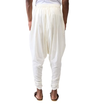 The Vihaan Pants are a festive essential in soft ivory, designed with comfort and versatility in mind. Relaxed yet refined, they pair easily with kurtas for any occasion. Crafted from 100% organic cotton voile, the fabric is breathable and lightweight, making them easy to wear all day. Elastic at the back waist and hems ensures a comfortable fit, while the clean cut keeps the silhouette sharp. A small star embroidered near the side pocket adds a thoughtful detail, marking them with a subtle Nicobar touch.