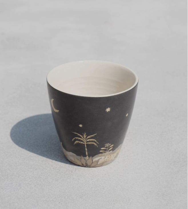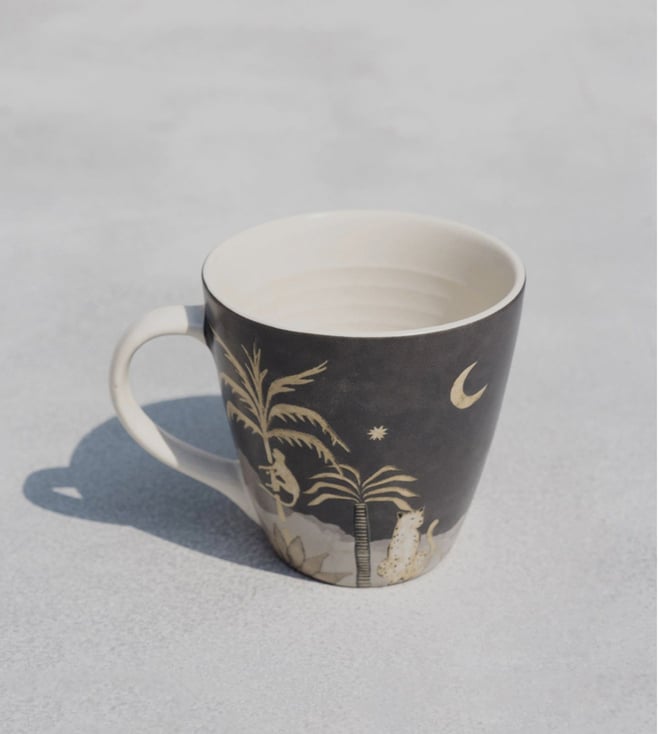 Sip your favourite beverage in the zuri conical mug, featuring nadira, the leopard, this mug showcases a captivating design inspired by the vibrant nightscape of zanzibar. The artwork is intricately applied, displaying the leopard moving gracefully, enveloped in rich, dark hues. Crafted from high-quality stoneware, this mug is built to withstand everyday use. The conical design of the zuri mug is both stylish and functional, offering a comfortable grip and a generous capacity for your favourite beverage.