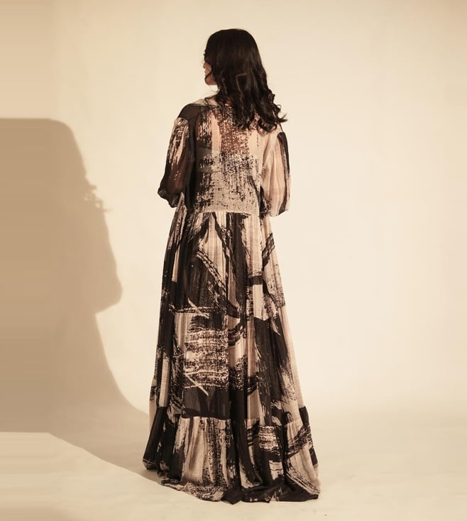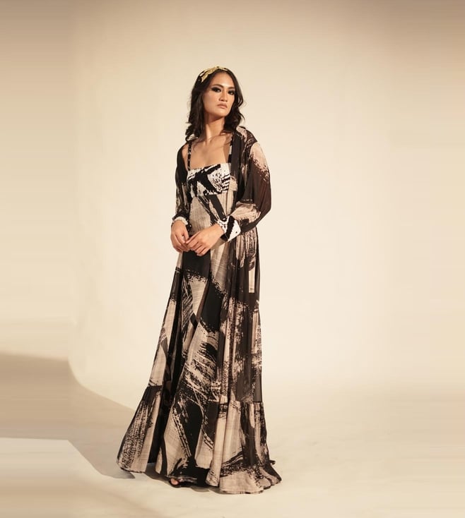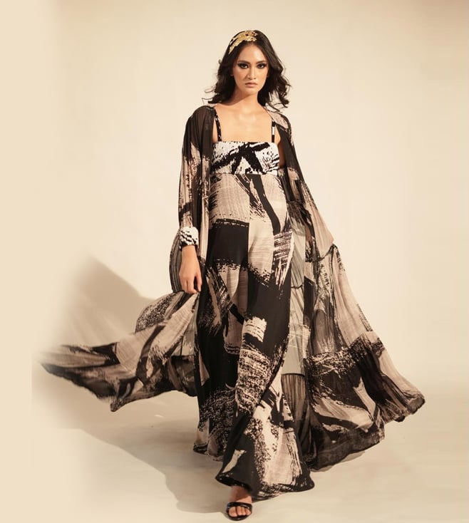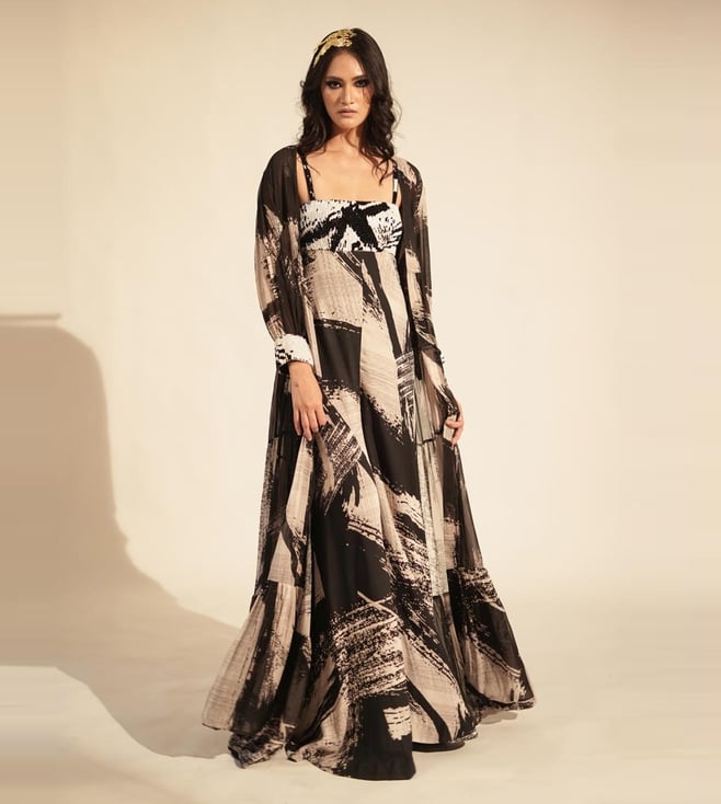 Nikita Mhaisalkar Black & White Stroke Print Jacket With Glass Bead Embellishment On Cuffs