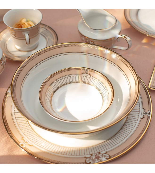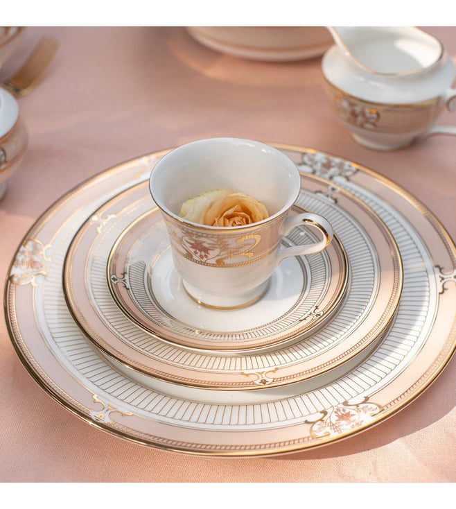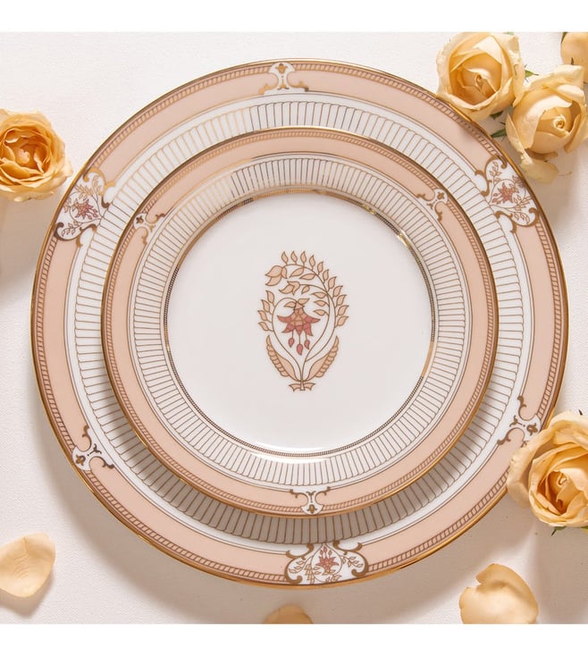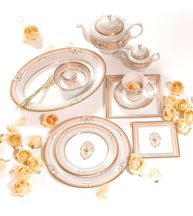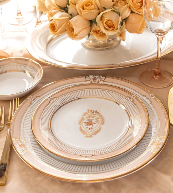 Nishita Design Peach & Gold Fine Porcelain Dinner Set (27 Pieces)