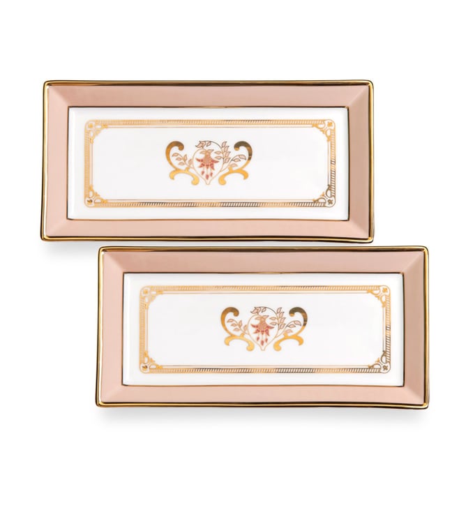 Nishita Design Peach & Gold Fine Porcelain Trays (Set of 2)