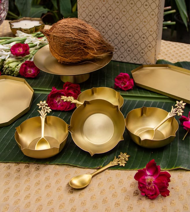 Antique Gold Brass Classic Surya Bowls - Set Of 2 (200 Ml)