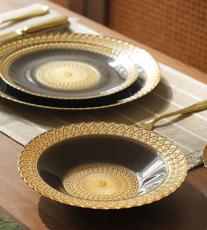 Black & Gold Glass Embellished Serving Bowls - Set of 2
