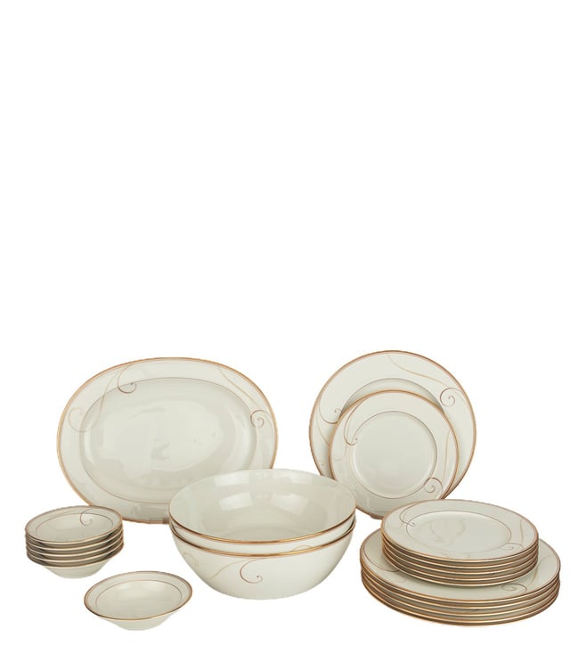 White Porcelain Golden Wave Dinner Set - 21 Pieces