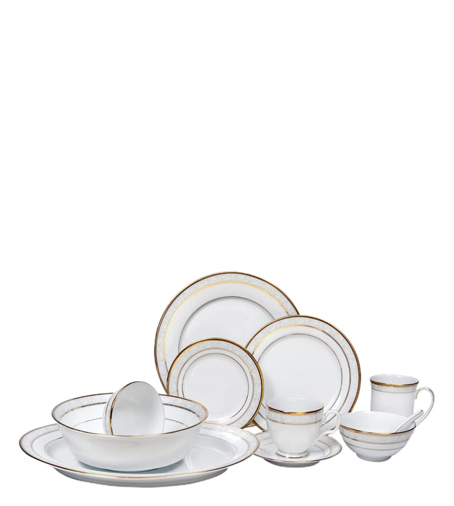 White & Golden Braidwood Dinner Set - 21 Pieces