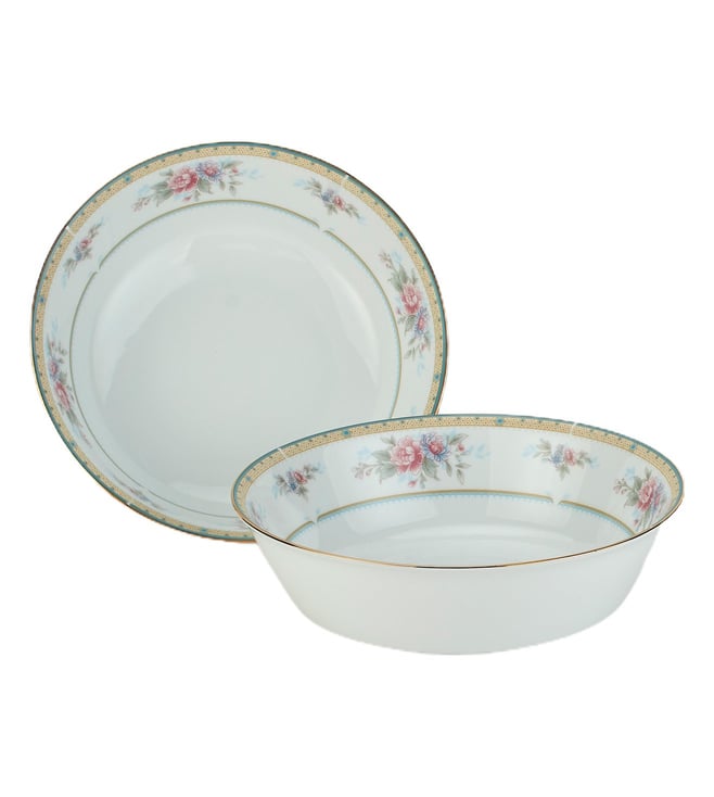 Noritake has been bringing beauty and quality to dining tables around the world. Superior artistry and craftsmanship, attention to detail and uncompromising commitment to quality have made Noritake an international trademark during this past century. The set contains - 6 X Dinner Plates, 6 X Salad Plate, 6 X Soup Bowl, 2 X RD Vegetable, 1 X Oval Platter.