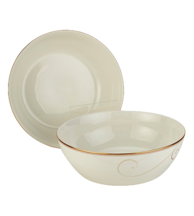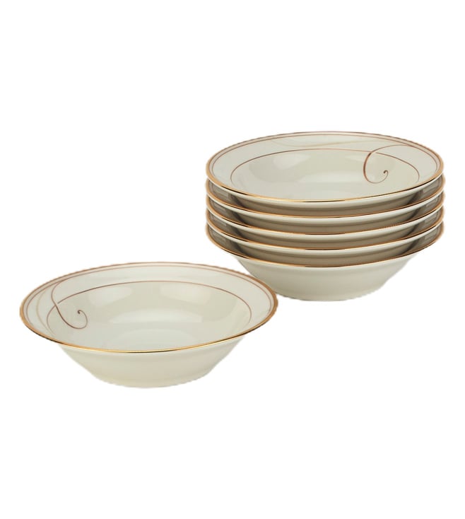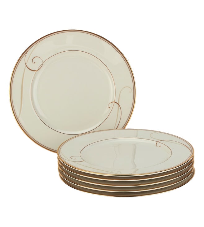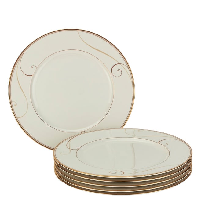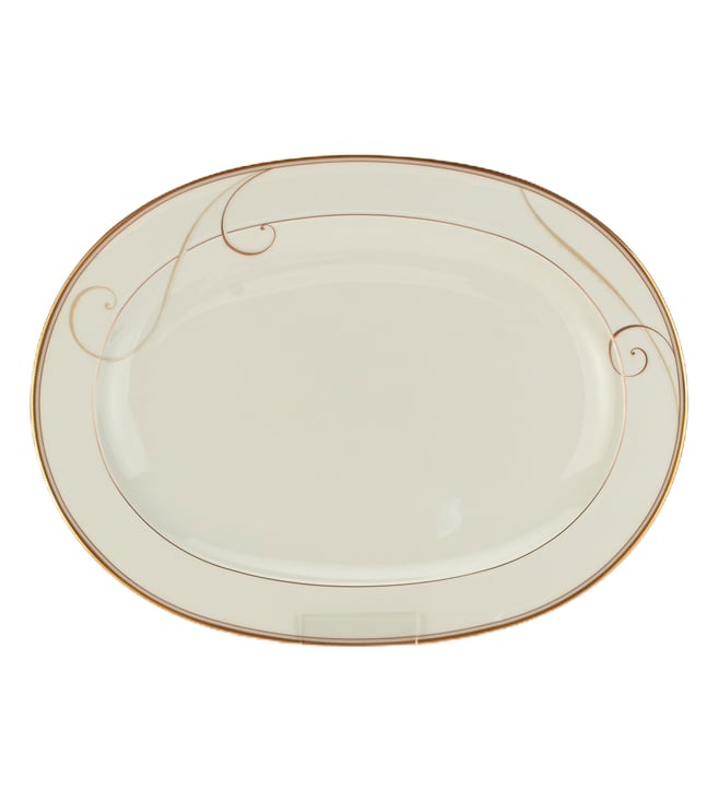 Golden Wave is a scroll motif that is interpreted as waves. Washing against the rim of the plate, the golden waves create a bold yet elegant presentation. Golden Wave coordinates with the entire Platinum and Golden Wave collection. The set contains - 6 X Dinner Plates, 6 X Salad Plate, 6 X Fruit Saucer, 2 X RD Vegetable, 1 X Oval Platter.