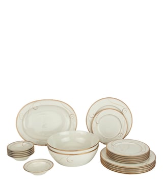 Noritake White Porcelain Golden Wave Dinner Set - 21 Pieces