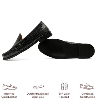 A true classic, the Black Slip-On is built from imported crust leather with a sleek finish and understated detailing. Designed with cemented construction and a latex footbed, it balances resilience with comfort for long hours. The handmade sheet sole ensures strength while the black tone guarantees unmatched versatility. From boardrooms to evening occasions, this pair stands as an effortless choice for men who value sharp styling without compromising ease. Occasions: Work meetings, formal wear, daily business looks