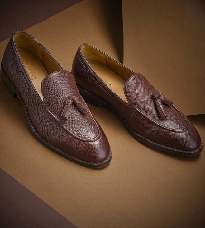 Sharp & distinctive choice, our Vintage Tassels are meticulously handcrafted with a decorative tassel sitting across the vamp. Shining in the glory of the Argentinian Hatch Leather, it is the choicest formal shoes for men. The hand-painted look on genuine Hatch leather gives more depth & personality to the shoes, while the supple leather lining & the Dainite Sole make them the gentleman s top pick.