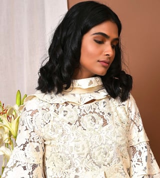 Fascinate all with the rich look of this kurta, pants and dupatta set. The kurta and pants are crafted from cotton lace and the cami is made from cotton and dupatta is chiffon. Disclaimer: Product colour may slightly vary due to photographic lighting sources. Country of Origin - India.