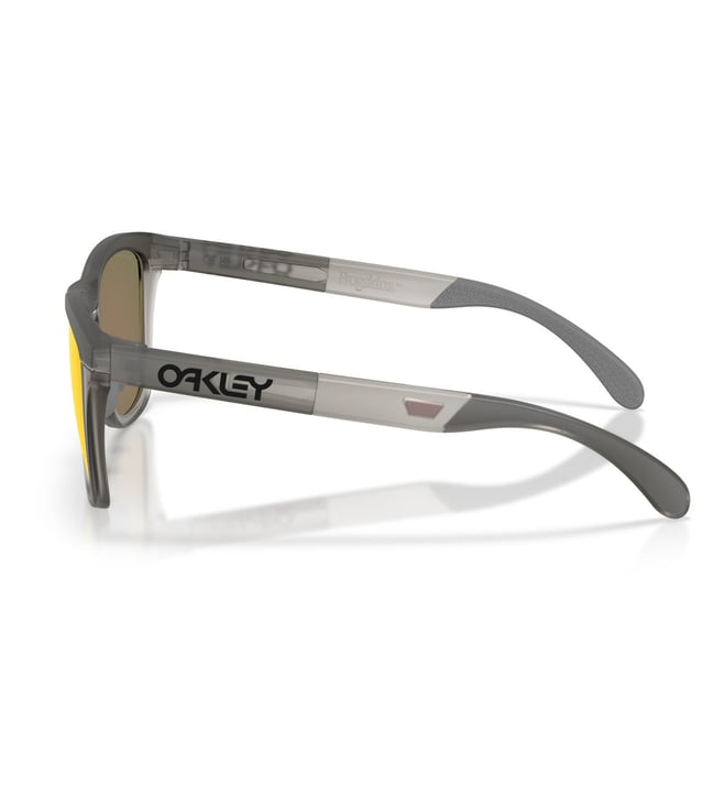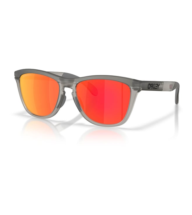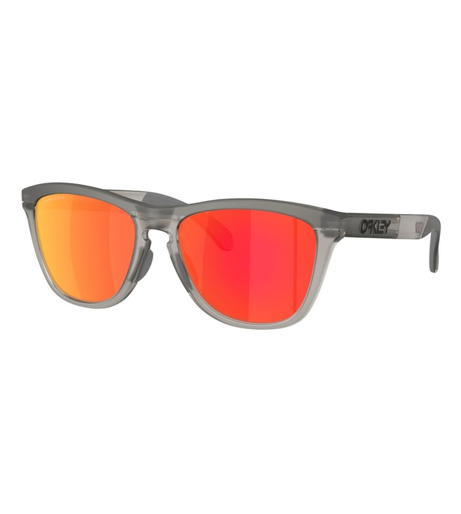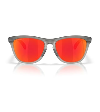 Stand out in the crowd by donning this pair of Sunglasses from Oakley. Designed from Injected, the Grey-hued frame assures utmost comfort with its lightweight make. The Red lenses are made with care from Polycarbonate that keeps your eyes protected without compromising on the style. The Full Rim design adds to its overall appeal.