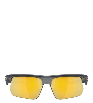Get hold of a refreshing look by donning this pair of Sunglasses from Oakley. Designed from Plastic, the Grey-hued frame assures utmost comfort with its lightweight make. The Gold lenses are made with care from Polycarbonate that keeps your eyes protected without compromising on the style. The Half Rim design adds to its overall appeal.