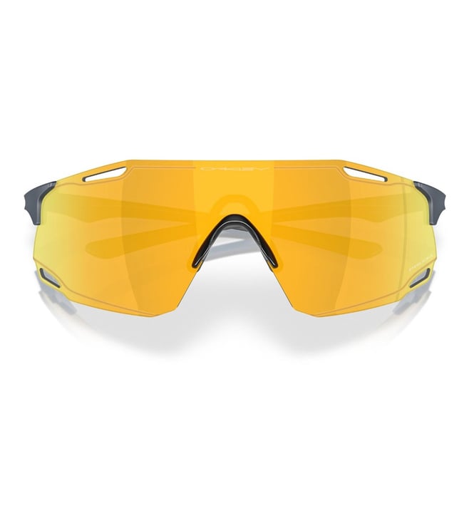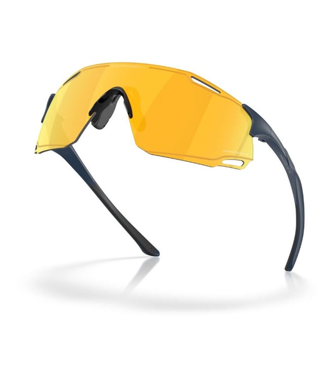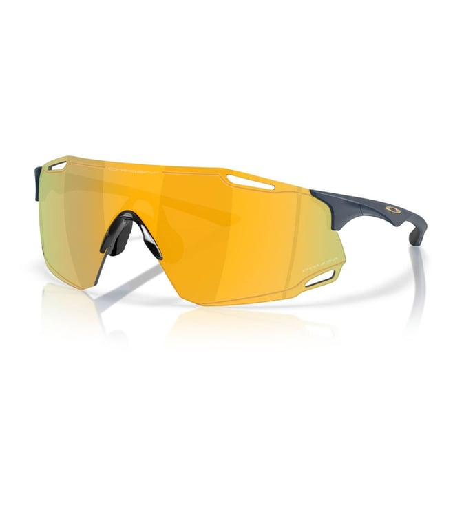 Embrace a unique style quotient by wearing this pair of Sunglasses from Oakley. Fashioned from Plastic, the lightweight frame vaunts a Blue hue. The Gold lenses are crafted with care from Polycarbonate that not only lends you a smart look but also assures complete protection of your eyes. The Rimless design further magnifies its overall charm.