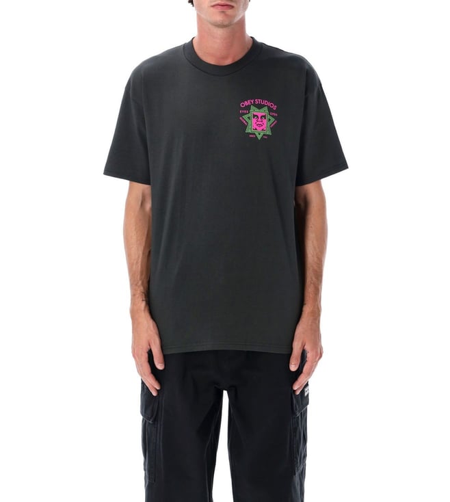 Black Crewneck Graphic Print T-Shirt