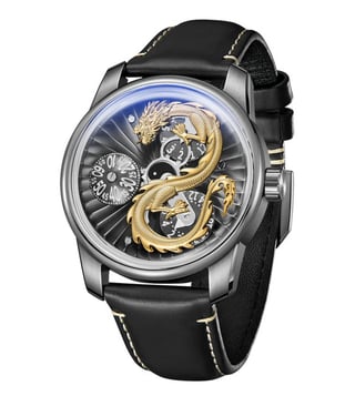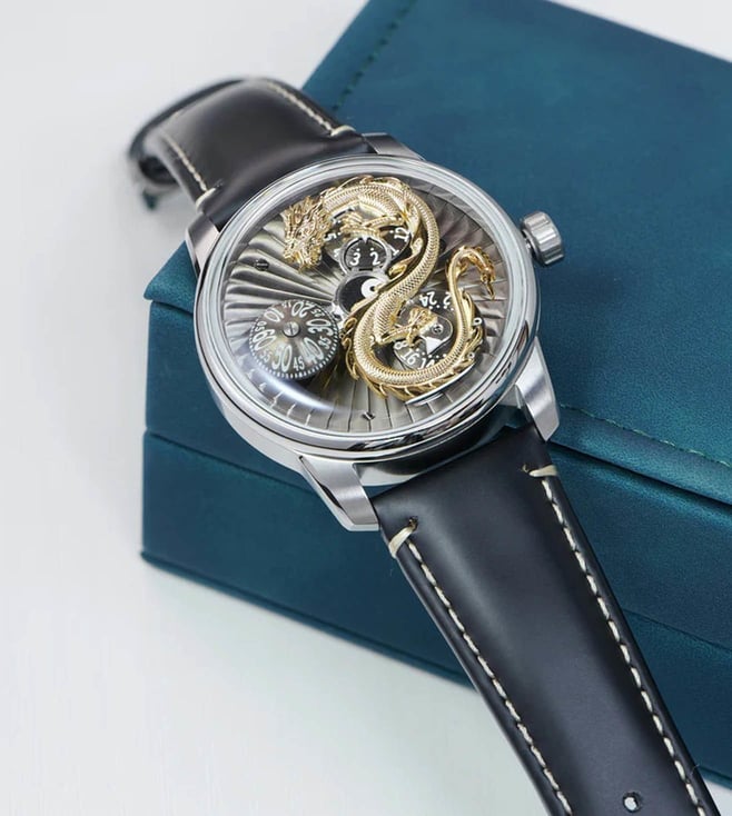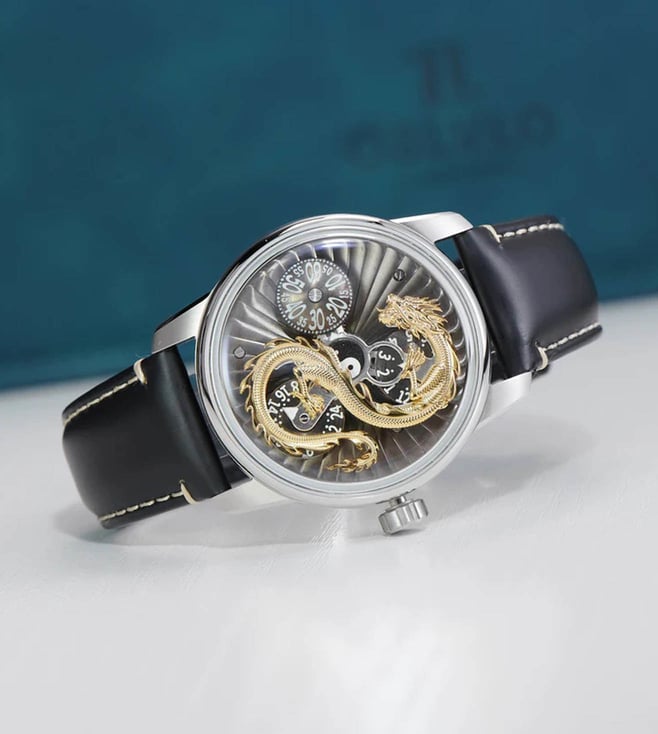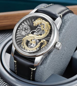 The OBLVLO Dragon timepiece is a masterstroke of horological artistry, where opulence meets mythical grandeur. At its heart lies a breathtakingly detailed golden dragon, majestically entwined across the dial an enduring emblem of power, fortune, and prestige. Encased in impeccably polished stainless steel, the watch radiates sophistication, its dial adorned with a turbine-inspired motif that creates a mesmerizing interplay of light and depth. Beneath its sculptural elegance beats the renowned Miyota Star automatic movement, delivering unwavering precision and mechanical excellence.