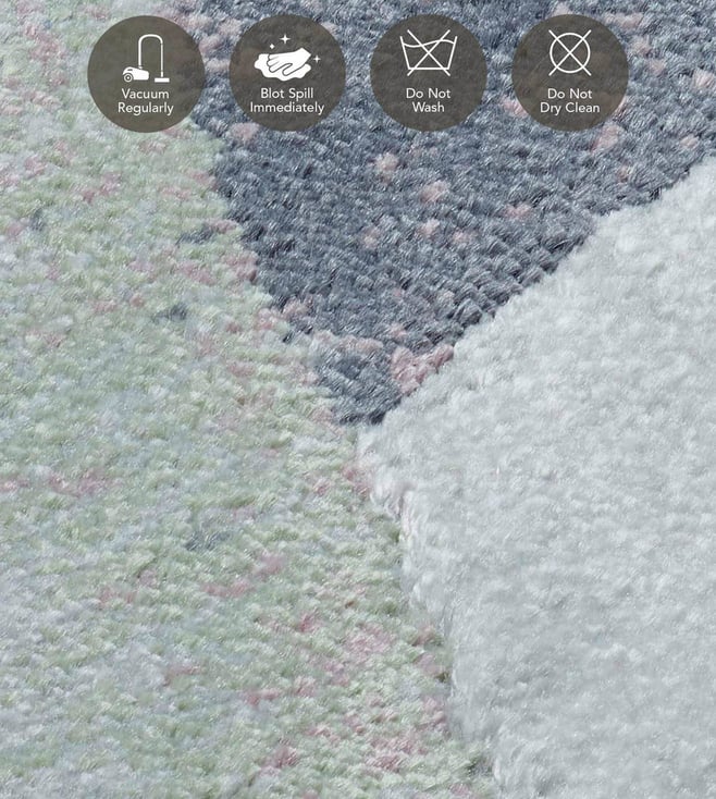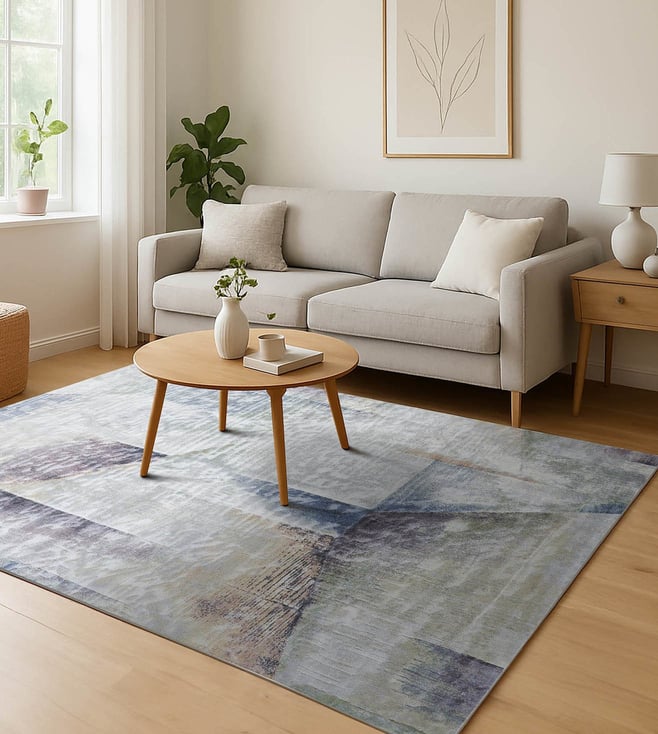 OBSESSIONS Cream & Blue Viscose Abstract Carpet (3x5 Feet)