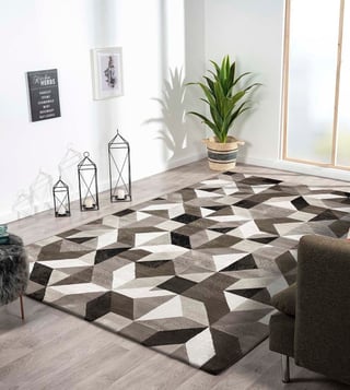 OBSESSIONS Cream & Grey Geometric Carpet - Large