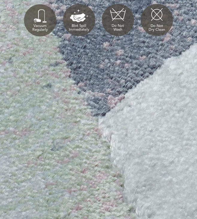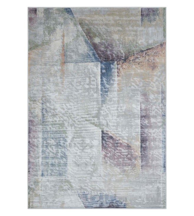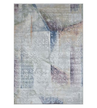 OBSESSIONS Cream & Blue Viscose Abstract Carpet (4x6 Feet)