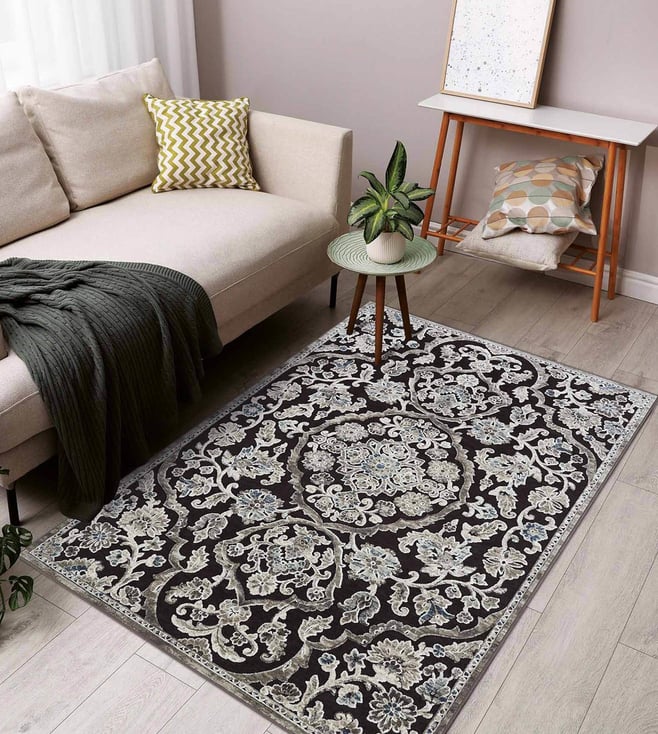 OBSESSIONS Dark Brown Viscose Classical Carpet (5x7 Feet)