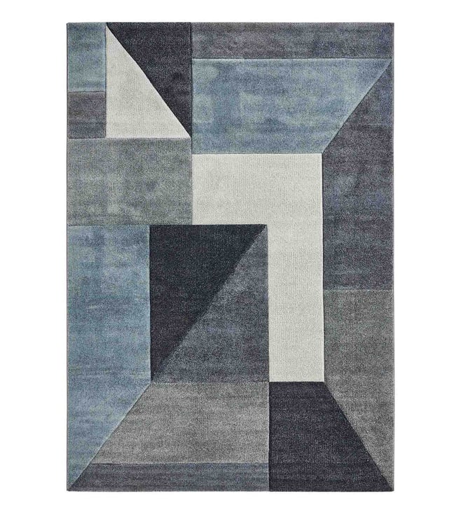 OBSESSIONS Light Blue & Grey Geometric Machine Made Carpet - Medium (230 cm x 160 cm)