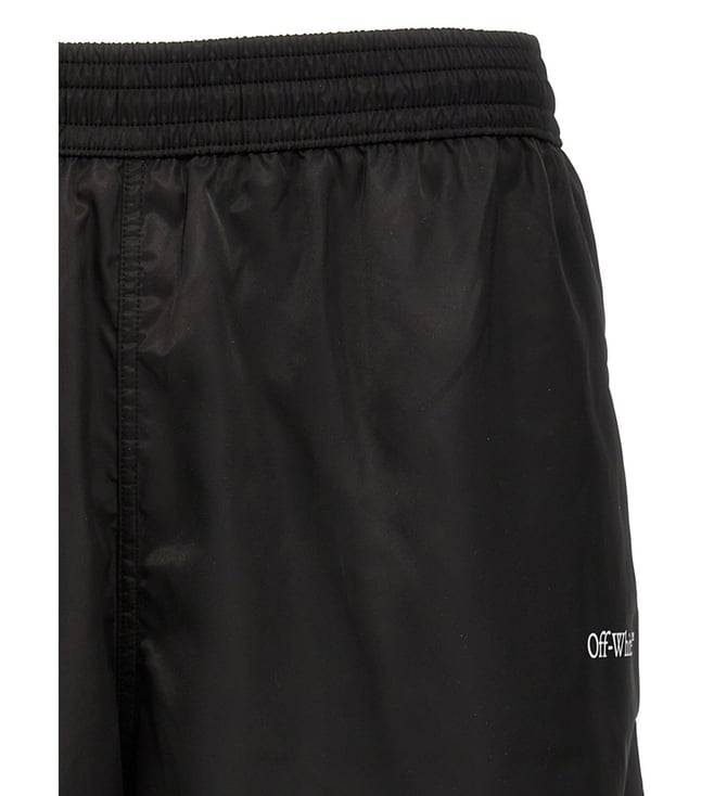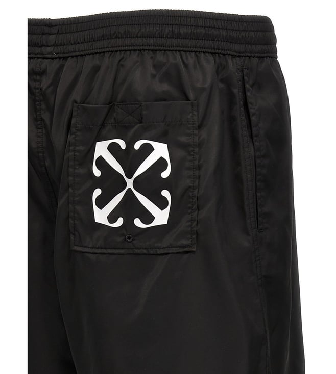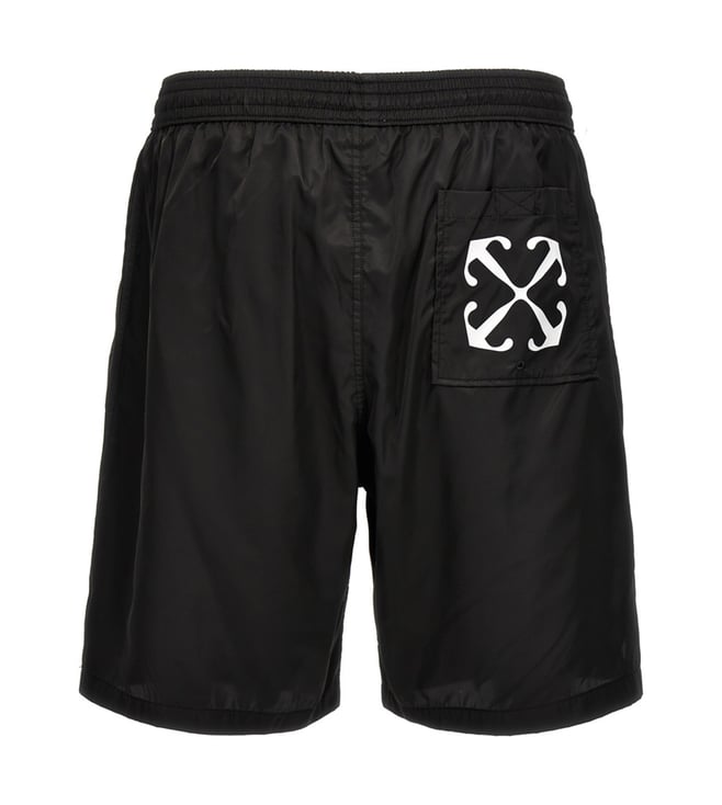 Elevate your style with the Off-White Black Arrow Surfer Swimsuit. Arrow surfer nylon swimsuit with logo print. Elastic waistband and drawstring. Pockets. Inner mesh briefs. True to size fit. Designed with attention to detail, it offers comfort, durability, and style for everyday wear. Products purchased from Darveys are supported exclusively by the warranty/exchange policies of Darveys and its partner boutiques. Brand owners and their channel partners are not responsible for exchange/warranty services for items purchased through Darveys.