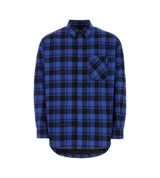 Elevate your style with the Off-White Blue Plaid shirt. Check pattern classic collar front button fastening chest patch pocket long sleeves curved hem. Products purchased from Darveys are supported exclusively by the warranty/exchange policies of Darveys and its partner boutiques. Brand owners and their channel partners are not responsible for exchange/warranty services for items purchased through Darveys.