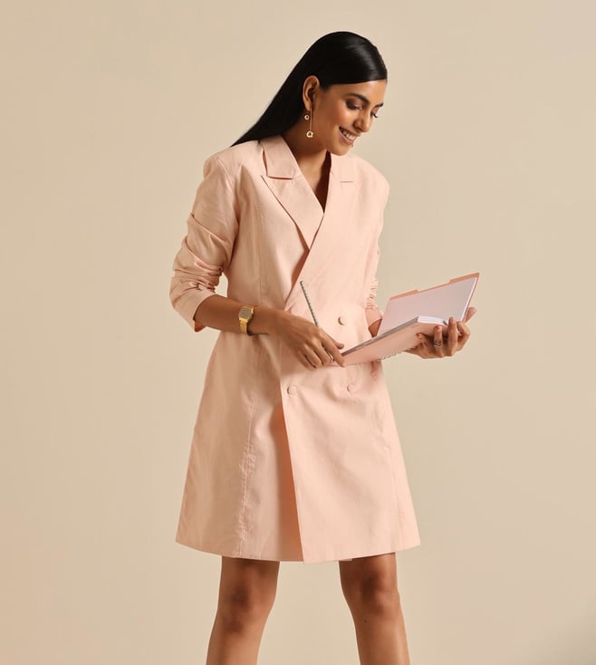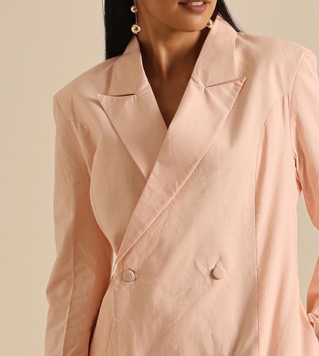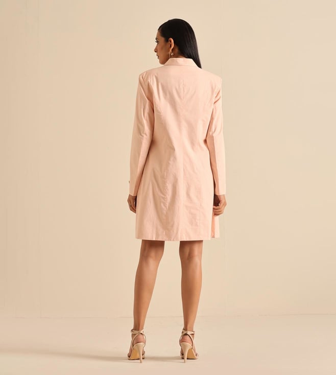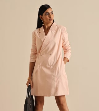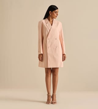 Okhai Festive Light Peach 'Unruffled' Pure Cotton Herbal Dyed Blazer Dress