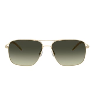 Amaze everyone by sporting this pair of Sunglasses from OLIVER PEOPLES. Fashioned from Metal, the lightweight frame vaunts a Gold hue. The Grey lenses are crafted with care from Glass that not only lends you a smart look but also assures complete protection of your eyes. The Full Rim design further magnifies its overall charm.