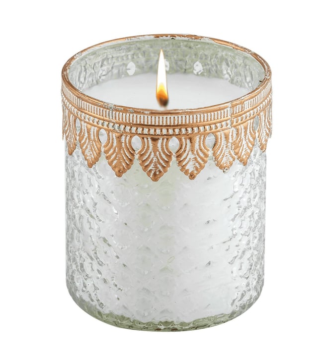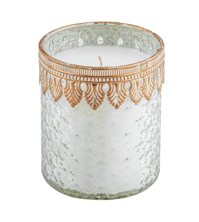 Embrace the feeling of an enchanted Eden with OMA LIVING's Clear Scented Candle Jar. The jar is exquisitely crafted from glass, making it look sophisticated and elegant. This will be a perfect addition to any home, giving it a subtle yet luxurious touch. Lighten and fill your home with the delightful fragrances of an Enchanted Eden. Disclaimer: All other items in the image are only for display purposes and will not be a part of the delivery content. Product colour may slightly vary due to photographic lighting sources. Country of Origin - India.