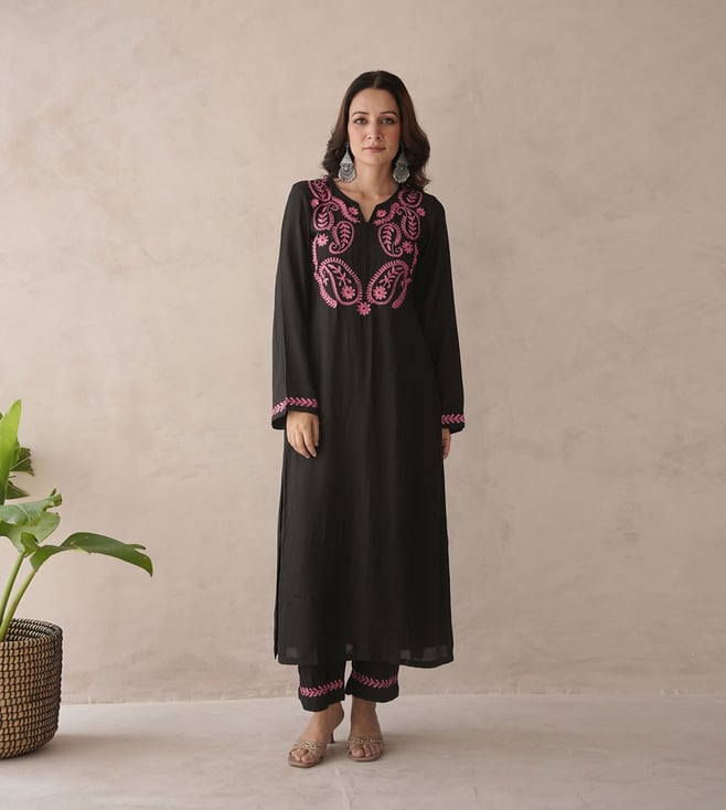 Black Muslin Comfortable Fit Kurta Set