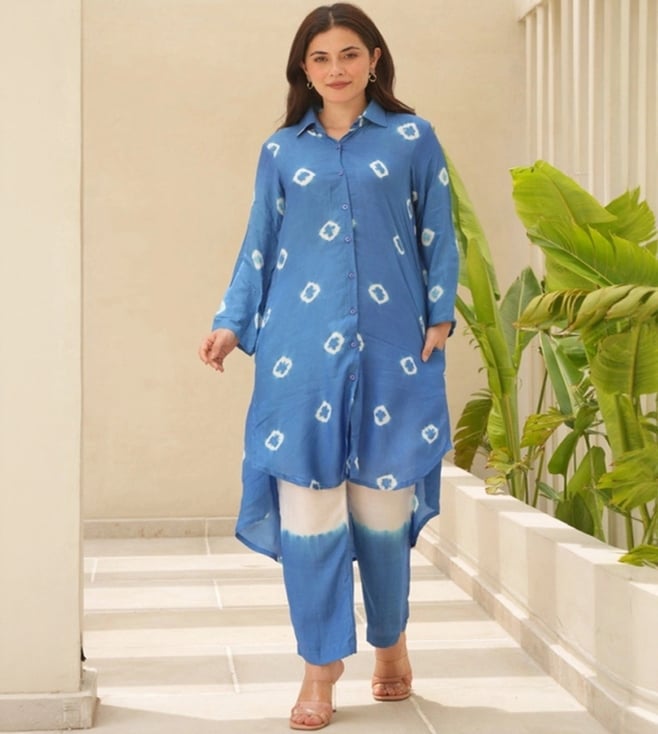 Bahaar Crown Blue Maslin Kaftan With Pants