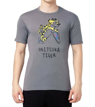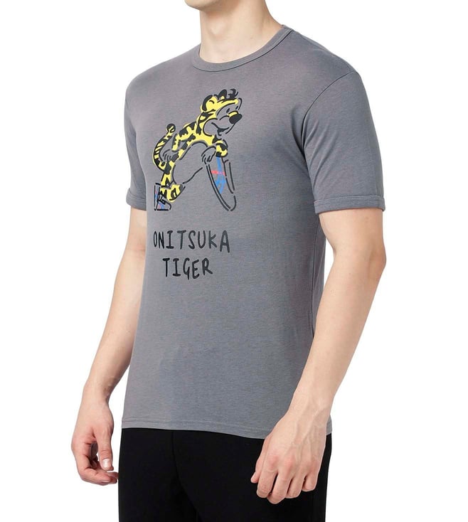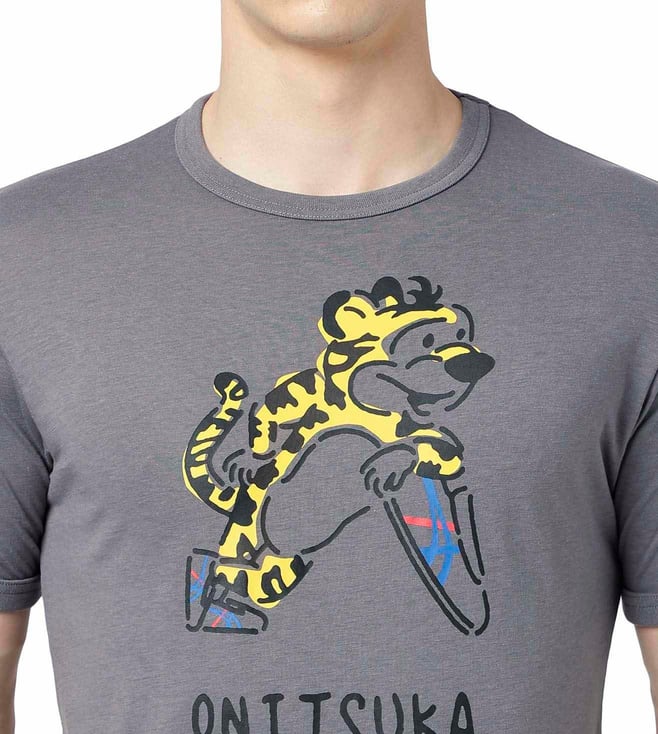 ONITSUKA TIGER Grey Printed Regular Fit T-Shirt