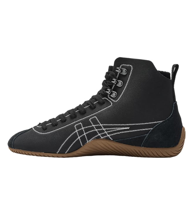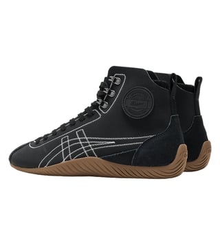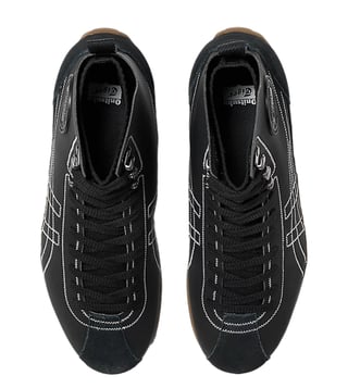 These middle-cut sneakers feature a unique design that integrates shoes and socks. They are crafted with knitted fabric that envelops your feet, complemented by panels of high-quality suede and matte-textured material. The sole takes inspiration from wrestling shoes of the 1970s, designed to mimic tiger scratches for a distinctive look.