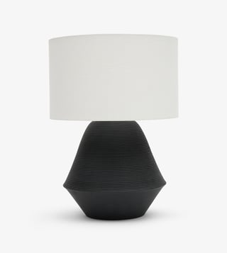 Tall, sleek, and sculptural, the Umbra Table Lamp mirrors its squat counterpart with more height. Black wood meets a crisp white shade for a timeless, balanced aesthetic in any room.
