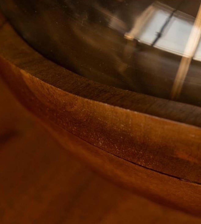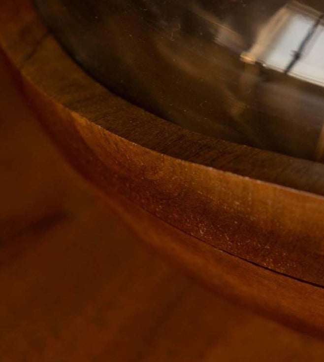 Clear Glass and Dark Walnut Finish On Wood
