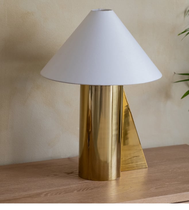Brass finish on metal and Cotton fabric shade