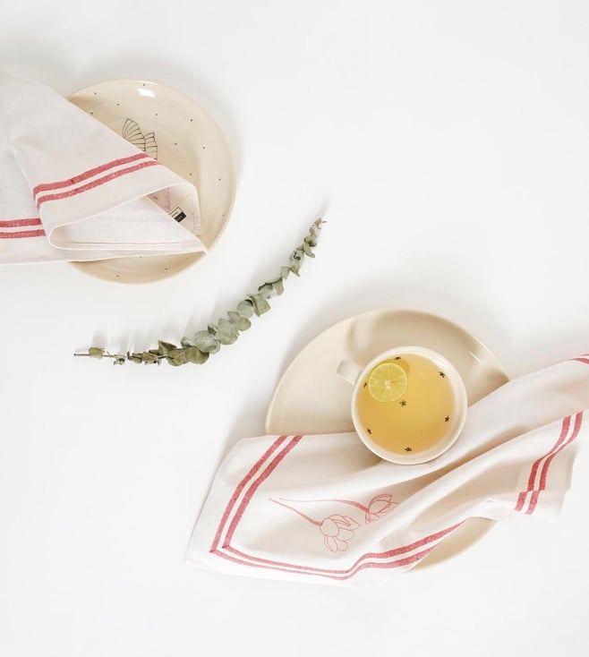 Showcase your refined taste by using this napkin. It has been crafted thoughtfully from 100 percent cotton. Disclaimer: All other items in the image are only for display purposes and will not be a part of the delivery content. Product colour may slightly vary due to photographic lighting sources. Country of Origin - India.
